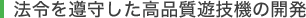 遊技機の開発において法令遵守、セキュリティ対策を強化し、パチンコホール様、ファンの皆様双方に安心・安全な遊技機を提供しています。