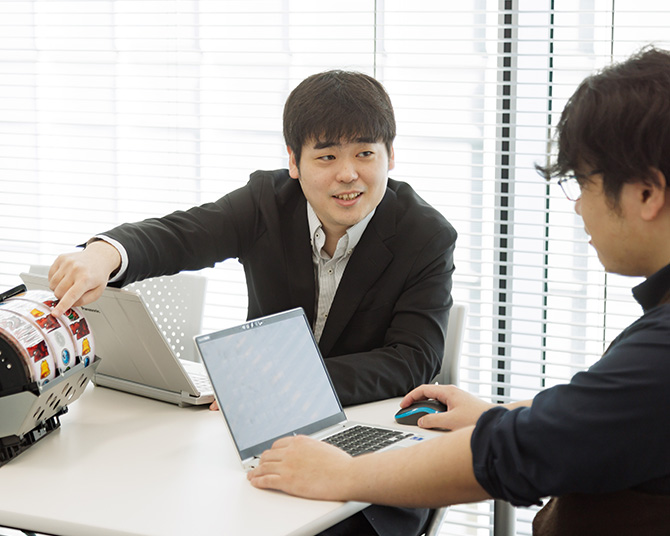 藤商事はインターンシップで特に魅力を感じた会社です。興味津々で参加したら、当時は自分が好きな作品で台を企画してみるという内容でした。これがもう楽しくて。思いつくままにやってみたという感じです(笑)。